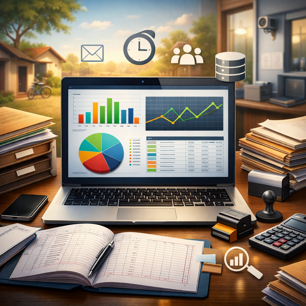 This powerful software helps CSC VLEs to track income, expenses, commissions, and service-wise reports in one single dashboard. No more manual registers or calculation mistakes!